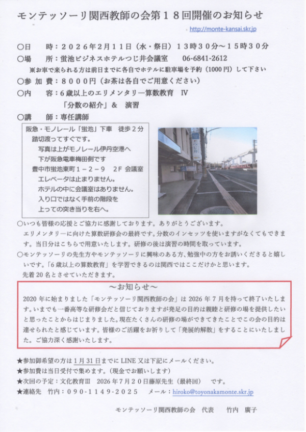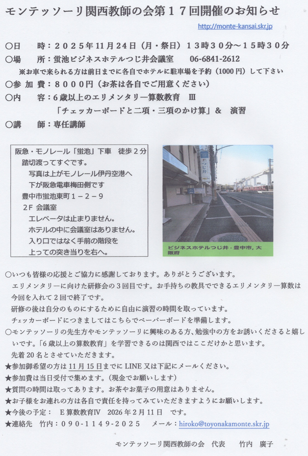 連絡先 豊中モンテッソーリ研究所 竹内廣子